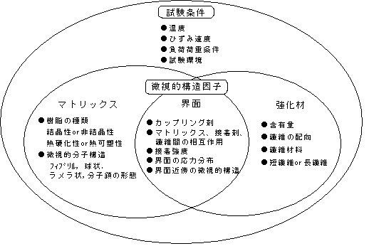 一般に,繊維とマトリックスの接着性に及ぼす影響として,被着材と接着剤の組み合わせ,被着材の表面粗さが関係する接着表面の化学的処理効果,繊維とマトリックスの両方に接着性の良いシラン等のカップリング剤の処理効果が考えられる.いずれにしても,界面の機械的接着性と化学的接着性が関係し,複合材料の力学的特性に大きな影響を与える因子である.