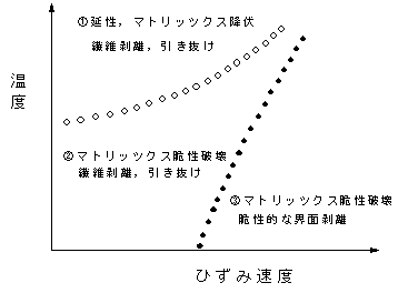 ![]() Fig.1.5 複合材料の破壊形態に及ぼす温度とひずみ速度の影響 |