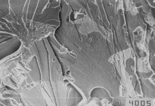 | 材料は、温度(低温、高温)や加わる荷重の種類(徐々に加わる、衝撃的に、繰り返し等)、環境条件(腐食)で強さが変わります。破壊の研究の目的は、おのおの条件下において、あるいは複合条件下で、どのような仕組みで破壊が生じているかを調べ、各種の環境のもとで、材料が持つ限界の強さを求めることにあります。また、電子顕微鏡で破面(破壊が生じた面)を観察し、解析すると、各破壊に特有なパターンが存在し、破壊のメカニズムを知ることができます。このような研究をフラクトグラフィ(破面解析、Fractography)といいます。これらの研究結果は、機械や構造物の破損事故原因の解明に応用され、どのような荷重が作用し、どのように壊れたかの解明に役立ち、再発しないよう一層の安全性の確保に応用されます。 ここでは、幾つかの破損事故の解析の例を簡単に述べます。 |