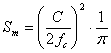 | ホーンマウス(出口)での面積Smとすると、次式で与えられる。図1ではSm= πr2に相当する面積。 |