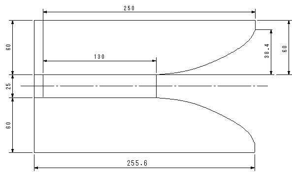 | 図1でホーンの長さは 250 + 5.6 =255.6mm |