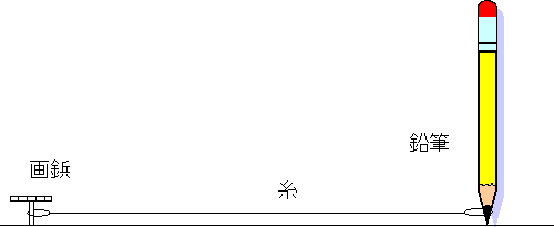 | ■ | 寄せ木細工で作る場合 図3、図4の寸法で厚紙に描き、図11のように型紙に合わせて切断し、角材を載せてゆく。30mm角材の場合は図12の寸法で2段重ねで作る。円弧のの部分は、図13のように鉛筆を利用して描く。厚紙は、不要になった大きめのカレンダーなどの裏を利用しても良い。 |