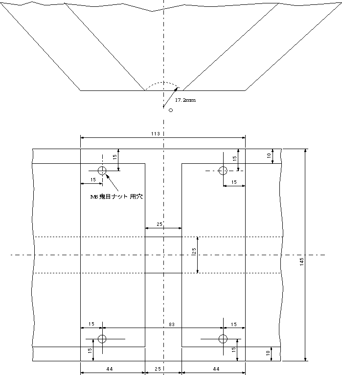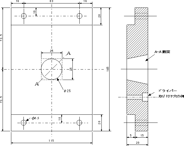![]() 図7ホーン部と図7側板の組み立て図 ドライバー取り付け側寸法 鬼目ナット下穴φ8mm程度 |
