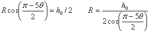 | ■ | フィンのならび半径Rの計算 図2(b) θ:フィンアングル ho: 1 in or 2 in |