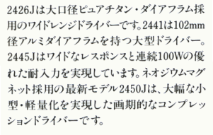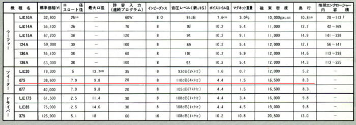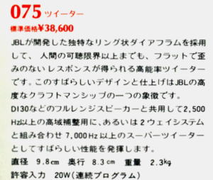 JBLスピーカーユニット 詳細 山水電気総合カタログより '75年12月1日