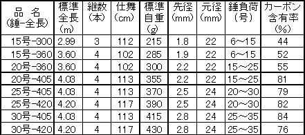 表1 振出カーボン投げ竿の一例![]() |