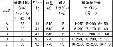 表4 リールの型番と糸巻き容量![]() |