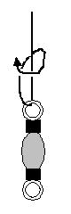| (2) | 小物釣り用万能竿(対象魚 タナゴ,チカ,カワハギ,イワシ,サバ等) 4.8〜5.4 m程度の振出し万能竿で、リールは付けず、常に手に持って釣る。従って,道糸と仕掛けまでの長さは竿の長さ程度になる。高い岸壁では魚の居る層(タナ)に届かない場合がある。細身で錘負荷はせいぜい最大5号程度である。通常、錘は0.5〜2号程度のもので使う。 |