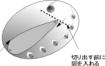 | 切断方向、切断前に切り込みを入れる |