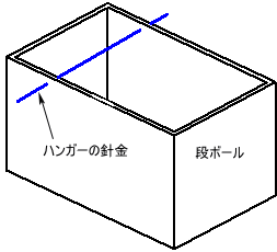 段ボール箱を準備し、クリーニング店でくれる針金のハンガーを適当にペンチでカットし、段ボールの両側の側板に刺す。塗料にどぶ漬けした場合などは、スプーンを下げて乾燥させる時、下部に、塗料がたまり、だまができ、紙などでこれを拭き取るので、この作業ができる程度の間隔で、針金を何本か刺す。この針金にクリップを掛ける。段ボールの底部には新聞紙を敷き、塗料が結構垂れるので、汚れたら交換する。