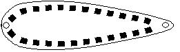製作方法はアワビのスプーンと同じであるが,糸を通す部分を工夫する必要がある。図の市販の真鯛釣り講師の方*1)が考案したVertical & Horizon CURLの製品の場合は直径3mm程度の孔をあけている。もっと抵抗を少なくするため、下図のようにステンレスの針金で輪を作って固定する。ステンレスの針金は0.5mm程度の直径のものを使用し,図のように釘に針金を当て,なるべくペンチを釘に近づけて変形させる。また、スプーンの大きさ、重量も何種類か変えたものを製作した。