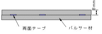 両面テープを5mm角程度に切り,3カ所に貼り,板を貼り合わせる。余り大きく切ると剥がすとき苦労する(