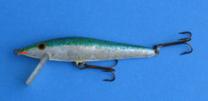リップを持って,胴体を白の水性ラッカーで二度、下塗りする。イワシ,サバの小魚に似せるため、背中は黒か、濃いグリーン,腹の部分は光り物,タバコの箱に入っている銀紙等を張る。境界は,点状に塗料を塗ってぼかす。すべて二度塗りである。この部分は,個人の工夫次第である。小学生や幼児が遊ぶ遊具に結構使えるものがあり,銀粉や金粉(ラメ)も有り,これを振りかけても良い。最近はルアー用のカラーシートが何種類も市販されている。