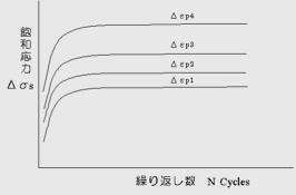 ![]() 図3 繰り返し数と共に変化する応力の変化と飽和 |