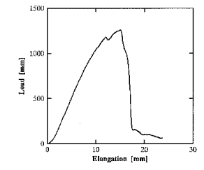 実験で得られた荷重−伸び曲線をFig.5に示す.荷重−伸び曲線は、直線部があり、その後、破断に至るまでの間、不連続的な形状を示す場合が多く、局部的な破壊が進行していると思われる.この曲線から、最大荷重、最大荷重時のelongation、 linear load、stiffnessが得られる. linear loadは、フックの法則が成り立つ直線部の最大荷重から求め、stiffnessは、直線部の傾きから求めた.得られた結果をFig.6に示す.図より、いずれの値も、取り付け方法の種類に対して、同様な傾向を示す.最大荷重は、Group-Fの場合に最大値が得られ、翻転したGroup-B,Group-Cは、いずれも翻転しない場合より低い値を示している.