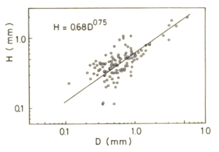 ![]() Fig.3 孔食径Dと深さHの関係 |