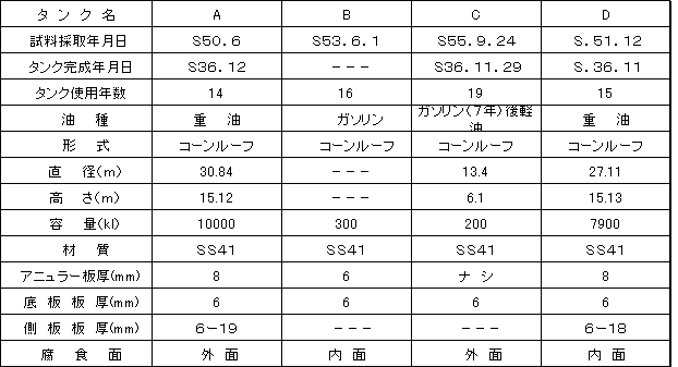 石油タンクを構成する鋼材の腐食に関する研究は多いが,構造物としての石油タンクの腐食挙動については,実際の環境を取り入れた研究は少ない。