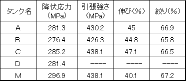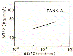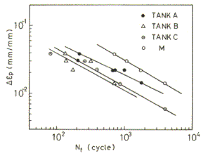 で表される。また,各タンク材の場合も未使用材と比較するとかなり低サイクル疲労強度劣化が生じていることがわかる。