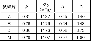 に従う。ここに、βは繰り返しひずみ硬化指数、σ0 は繰り返し強度係数である。実験で得られたβとσ0 をTable.5に示す。未使用材も腐食材も同程度の値であり、繰り返しひずみ硬化特性に及ぼす腐食の影響はないといえる。