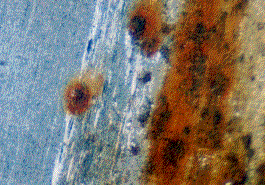 Fig.2(a)角波板に生じた赤さび Fig.2(b)赤さびの拡大図