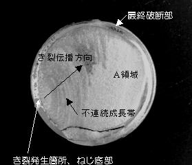 ![]() 図1 破損した取り付けボルト 図2 ねじ底部から発生していた微視き裂 |