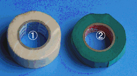 マスキングテープは先端を指で持ち、マスクする位置に合わせる。塗布する壁面にテープの側面をぴったり付けたまま、回転させながらテープを伸ばす。密着させるときはへらを押しつけながら移動させる。指で固定すると,トゲなど刺さって結構危険。 |