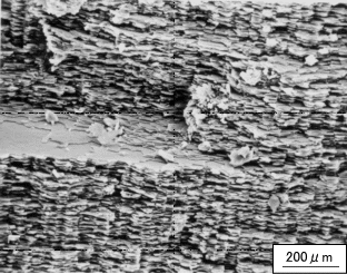 | 葉状構造の内面層@の断面 貝柱が付いている内面層の断面写真 |