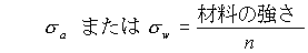 | この設計計算の際に用いる応力の値を許容応力σa(allowable stress)または使用応力σw(working stress),nは安全係数あるいは安全率(safty factor ,factor of safty)です。 |
