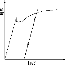 図3.1で、C点を超える伸びを受け塑性変形した試験片に,荷重除去後ただちに再荷重すると降伏点は表われない。