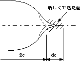 | 設計時に,負荷応力がσcであることが解っているとき,欠陥の大きさが2c以上であると危険であることを示し,溶接部などの欠陥評価の際,材料中に存在するき裂の許される大きさの寸法を与える。 |