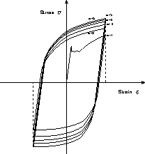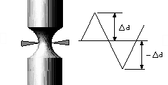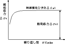 | 塑性変形を与えるような大きな繰り返し荷重を作用させた場合、10,000 cycle 以下の繰り返し数で疲労破壊する(低寿命)ことから、低サイクル疲労(low cycle fatigue) と呼び、これに対して、降伏応力より低い繰り返し荷重を作用させた場合を高サイクル疲労(High cycle fatigue)と言う。一般に、疲労という場合は、寿命の長い高サイクル疲労を指す場合が多い。低サイクル疲労試験から、以下のように重要な情報が得られる。 |