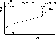 一定荷重が負荷された場合、瞬間的に弾性伸びが生ずる。その後、急激に伸びた後、伸び増加率が低下する区間である。