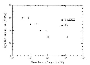 図5.17 3.5%HCl水溶液中におけるAS材のS−N曲線
