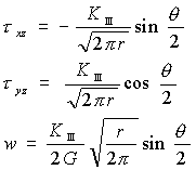 | モードVの面外せん断形式の場合は次式のようにもとめられている。 | ||||||||||||