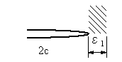 | 1.き裂を有する材料のき裂開口の変形様式 き裂を有する弾性体に外力が作用する場合、長さ2c、高さ2b、き裂先端の曲率半径ρのき裂が板に存在する。変形形式は図1〜3のように、き裂に対する荷重の作用の仕方から、3つのモードに分類されている。 |