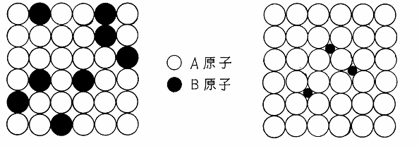 ![]() (a). 置換型固溶体の模式図 (b). 侵入型固溶体の模式図 図5 |