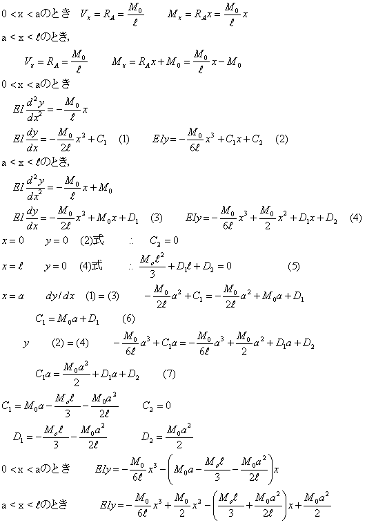 となる。なお,M0は,はりを上に凸になるように変形させるので符号は−である。![]() |