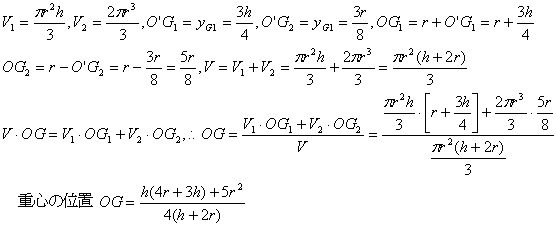 (3).(1)の円錐と(2)の半円球が合体した場合