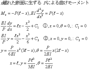 固定端をx軸の原点に取り、(L-x)の長さのはりBCに着目して計算する場合もある。結果は同じでも、理解しにくい所がある。![]() |