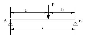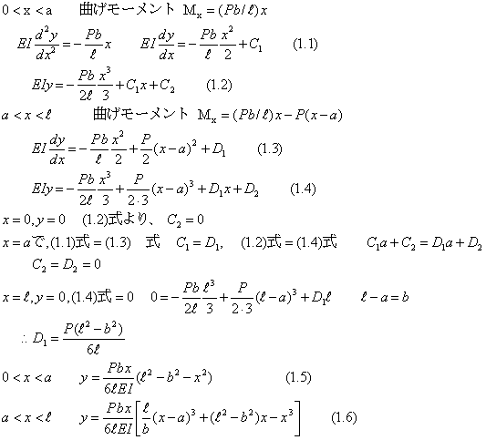 | (1).両端支持、1つの集中荷重の場合 −−−一般的な解法 |