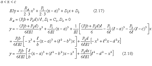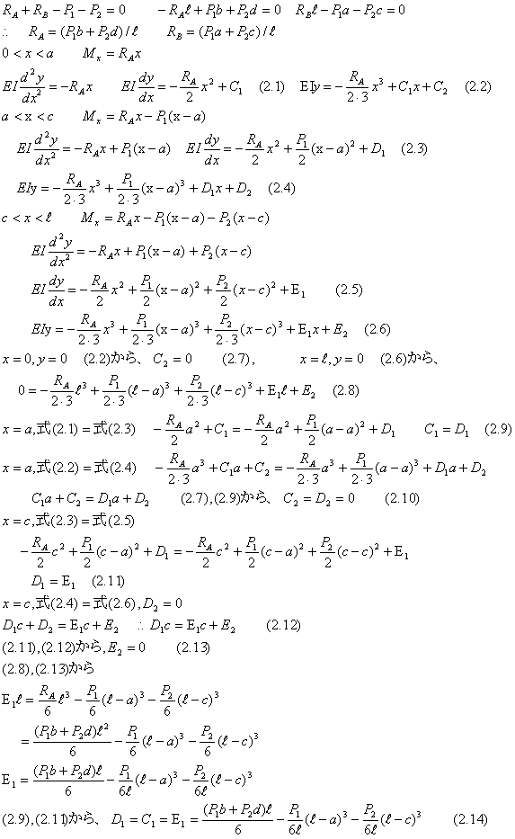 | (2).両端支持、2つの集中荷重の場合 −−−一般的な解法 |