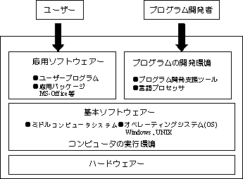 ここでは、ソフトウェアはユーザの作成するプログラムも含むものとみなす。それらは次のように3つに大別して考えることができる。