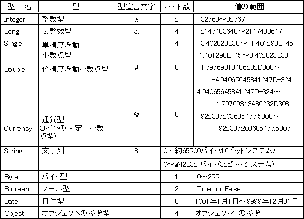 表3. 3 基本データ型 Visual Basic Ver.6.0の場合