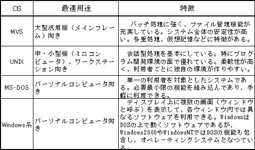 オペレーテイングシステムを構成するカーネル以外の各種管理プログラムの詳細については次節で述べる。