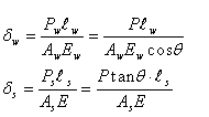 | (3). | 部材ABの伸びδw, 部材BCの伸びδsを求める。 |