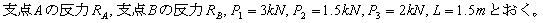 ●図のはりの場合、せん断力、曲げモーメント、せん断力図、曲げモーメント図を求める。