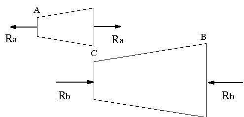 ACにRaの引張荷重、CBにRbの圧縮荷重が作用すると考えると、C点ではRa+Rb=Pとなる。