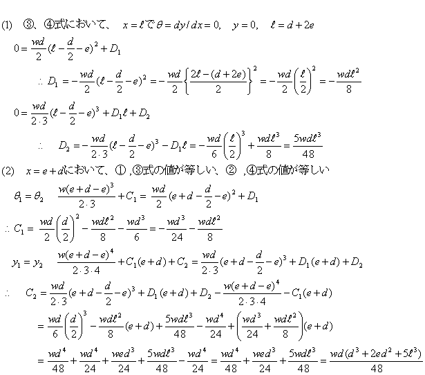 | 次に、積分定数C1,C2,D1,D2を境界条件から求める。 | |||||