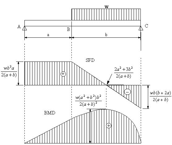 図の梁の場合に、せん断力と曲げモーメントを求め、せん断力図と曲げモーメント図を示す。