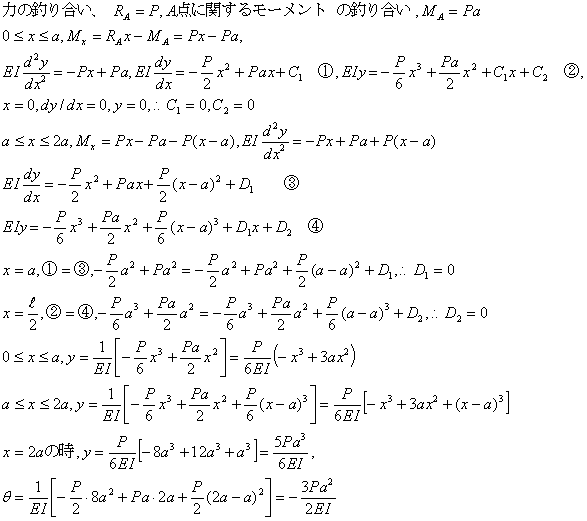 図の梁の場合に、たわみ曲線と自由端におけるたわみを求める。